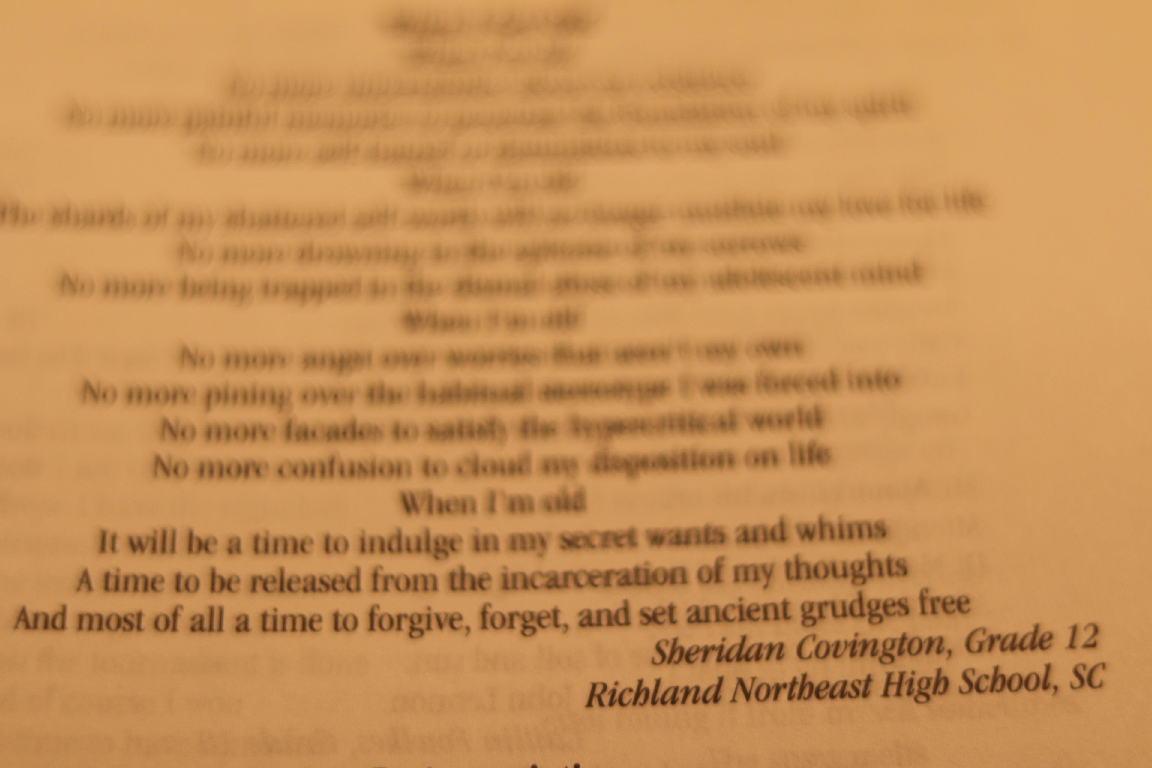 In Fall 2010 her poem titled "When I get old" won a writing contest.